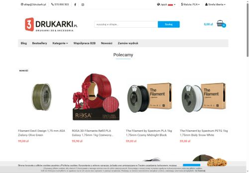Sklep www.3Drukarki.pl, posiada w swojej ofercie drukarki 3D, Filamenty ABS, PLA, HD PLA, PETG, HIPS, TPU firm takich jak Fiberlogy, Devil Design, Spectrum Filaments, Print-Me, Ekofilament oraz akcesoria do drukarek 3D, min. klej Dimafix, NeedIt, C-Sti