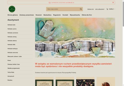 Sprzedażą herbaty i kawy zajmujemy się od ponad 20 lat! Mamy w ofercie ponad 300 mieszanek. Dbamy by nasze produkty były świeże, smaczne i w dobrej cenie .Prowadzimy sklep stacjonarny w Warszawie - Falenicy i sprzedajemy w internecie